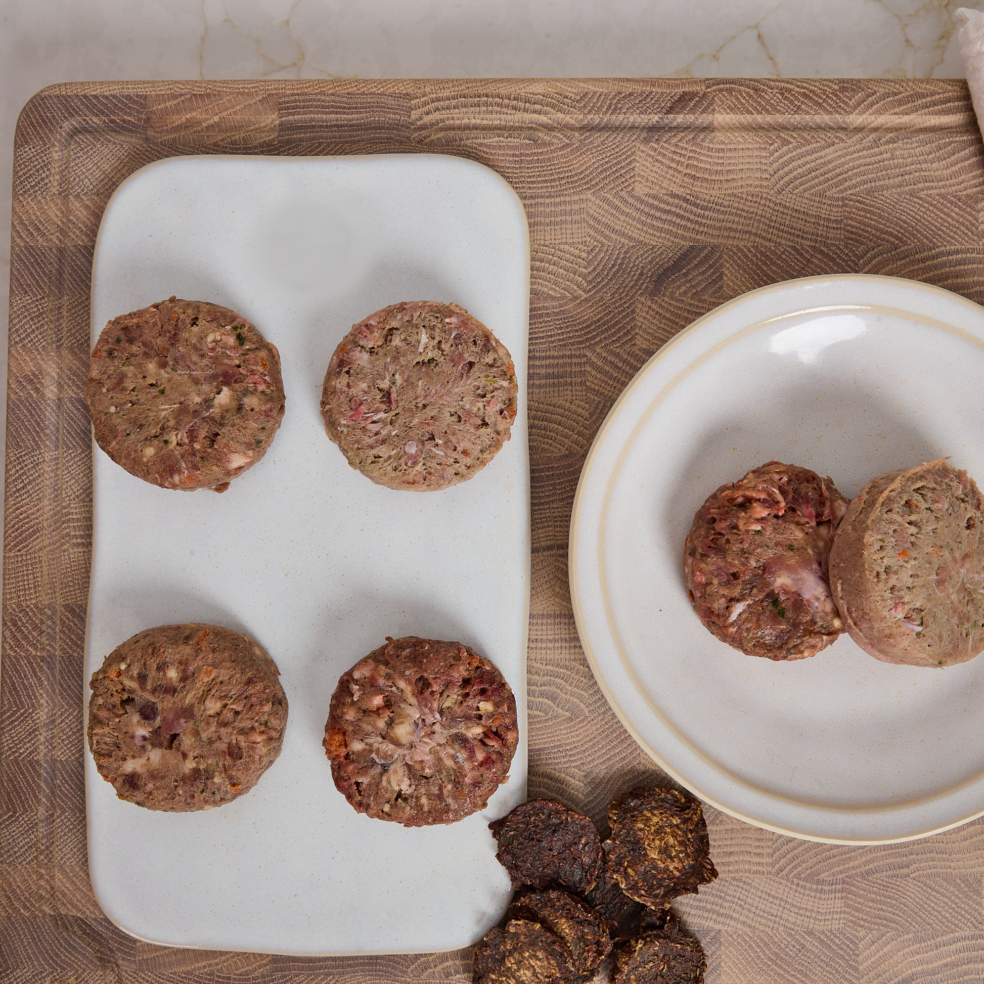 At the heart of what we do are our signature patties – expertly portioned, packed with the finest natural ingredients, and brimming with all the wholesome goodness your dog needs to thrive. No fillers. No nasties. Just honest, nutritious meals crafted to make feeding time as effortless as it is nourishing. Because we don’t just make pet food better – this is Pet Food Reimagined.